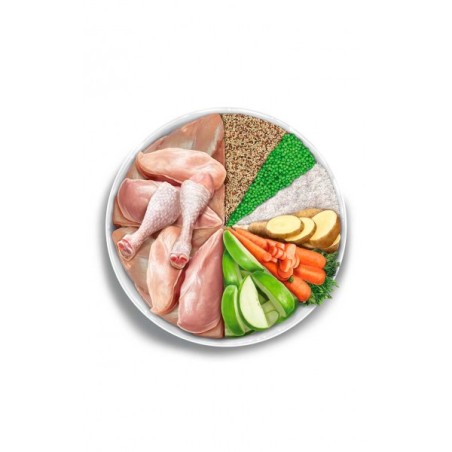 - 66 % de poulet fraîchement préparé, sans farine animale.